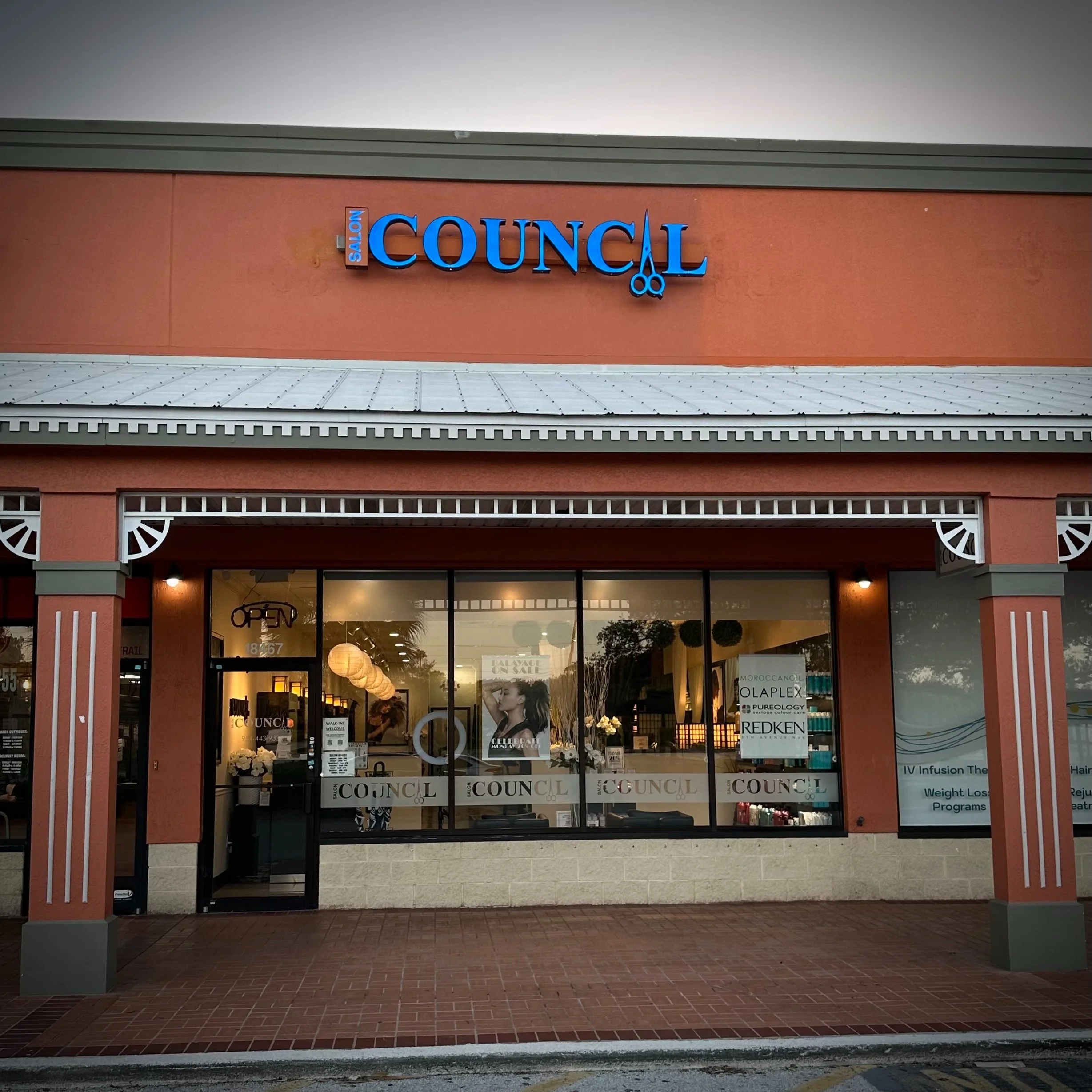 Discover the heart of Salon Council in our Pembroke Pines salon. Our gallery highlights the welcoming space where it all began—stylish interiors, relaxing ambiance, and a professional setting designed for an exceptional salon experience. From the polished exterior to the thoughtfully crafted interior, every corner is created to make guests feel at home while enjoying the best in hair artistry.